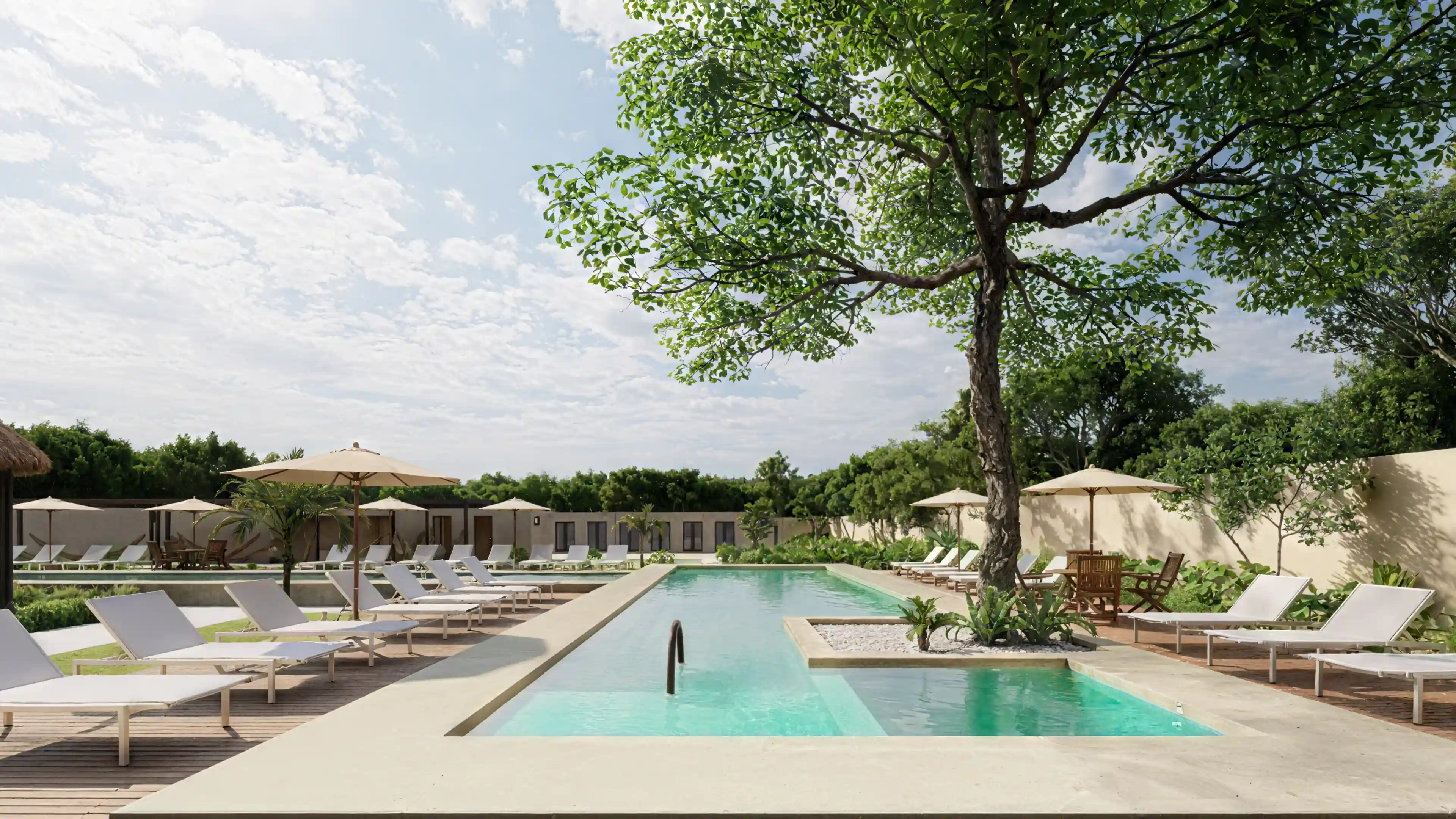 Alberca semiolímpica, rooftop con plunge pool y acceso a deportes acuáticos.