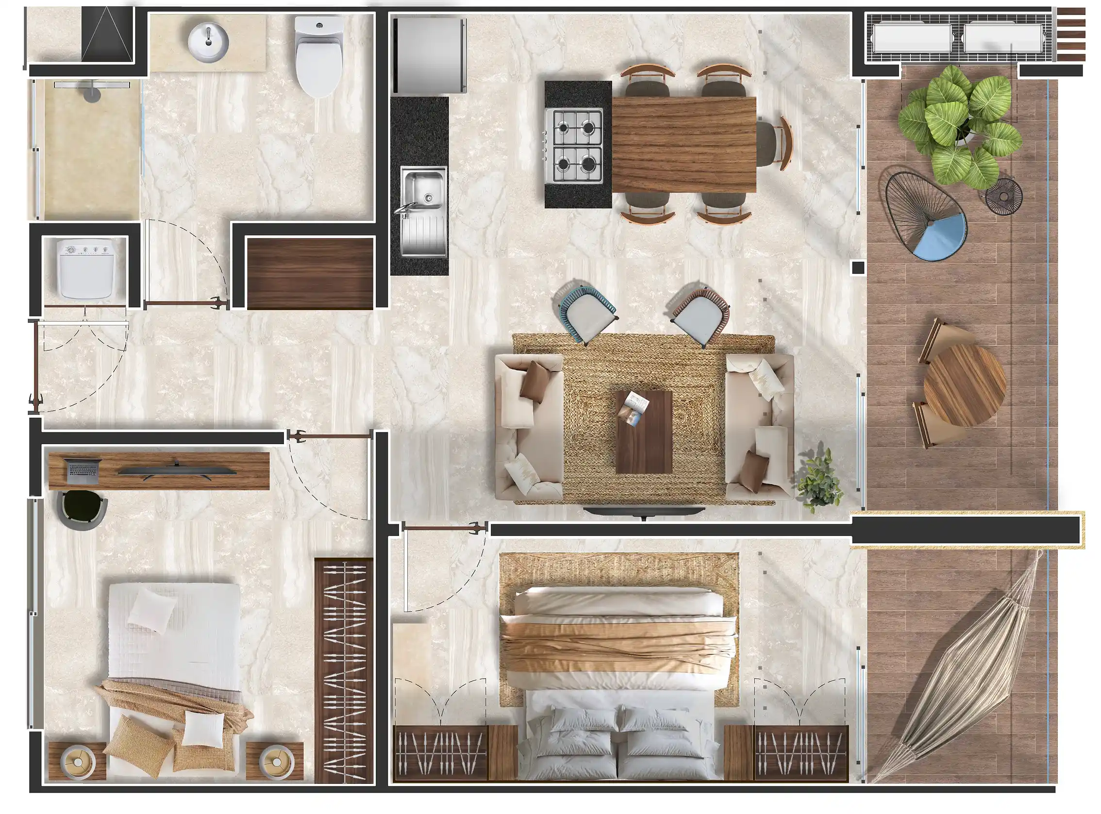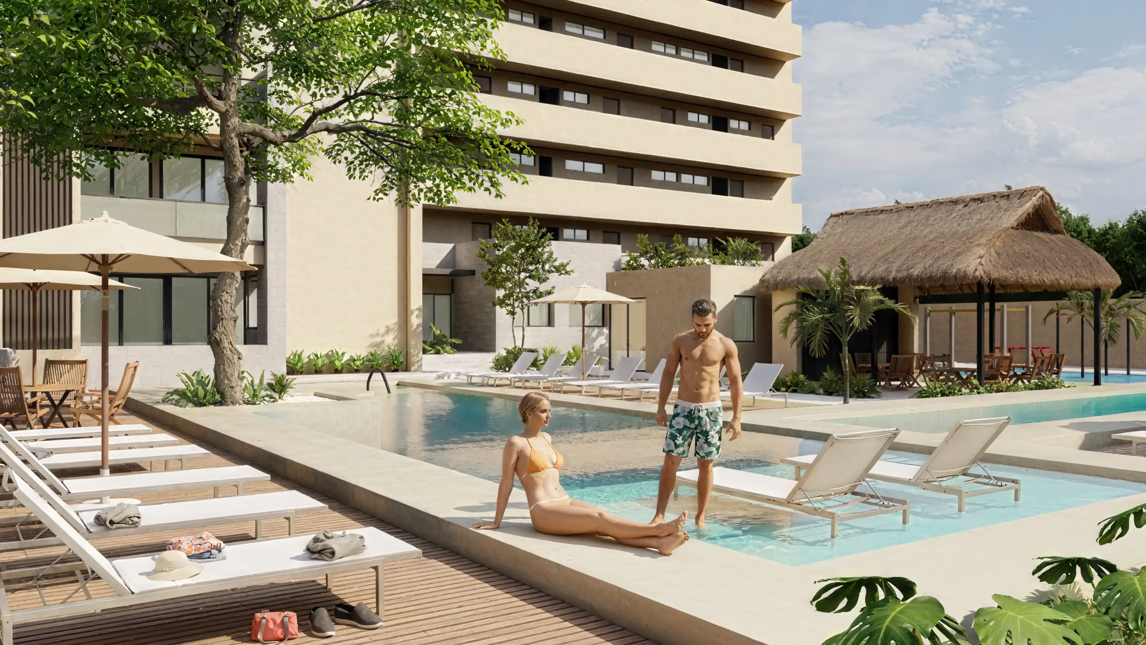 Disfruta de amenidades como nuestra alberca semiolímpica de dos carriles de nado, un exclusivo rooftop con plunge pool y área de grill, y acceso a emocionantes deportes acuáticos, con renta de equipo para snorkel y paddleboard. Además, disfruta de un business center, un moderno gimnasio, restaurante y wellness área.