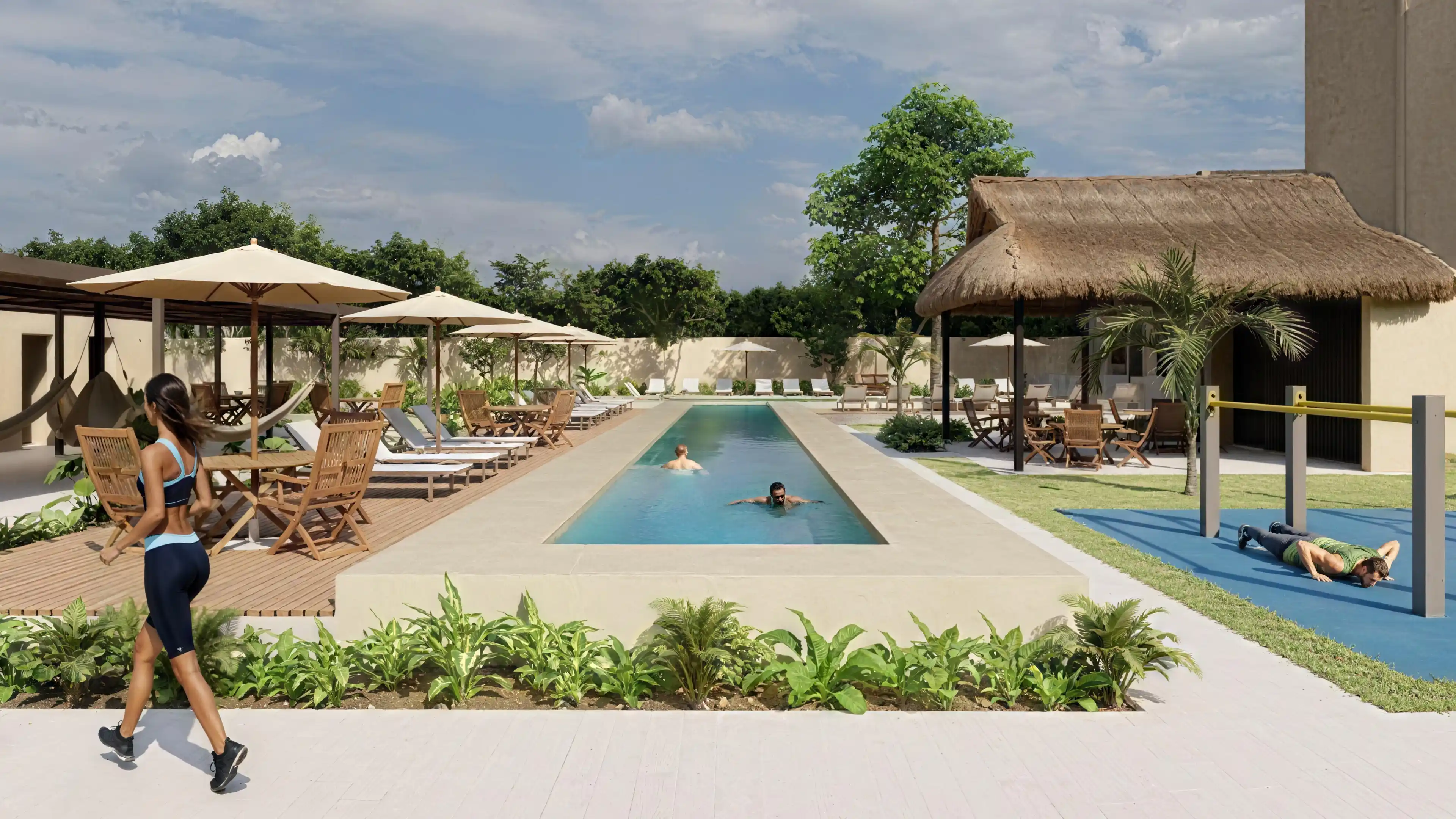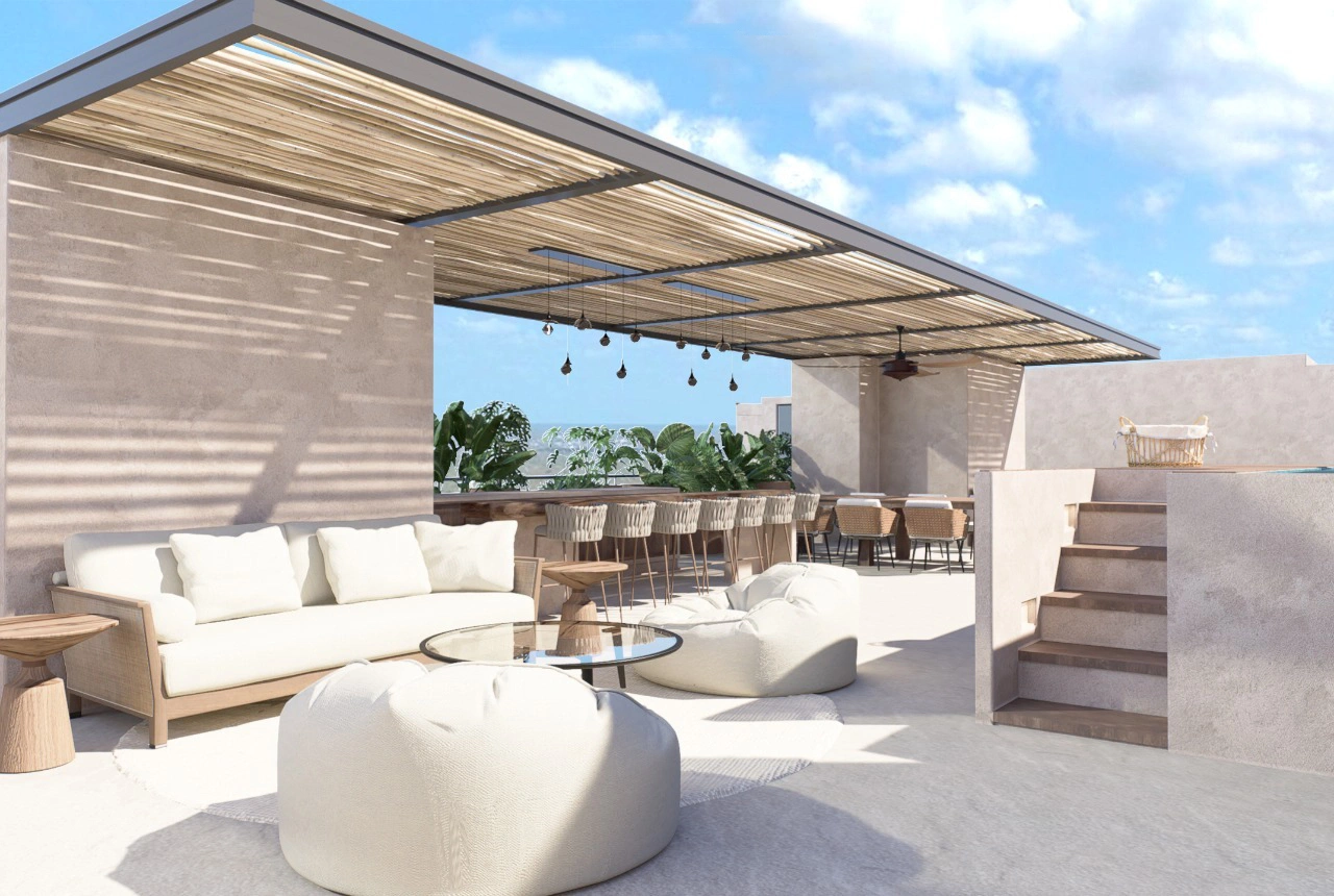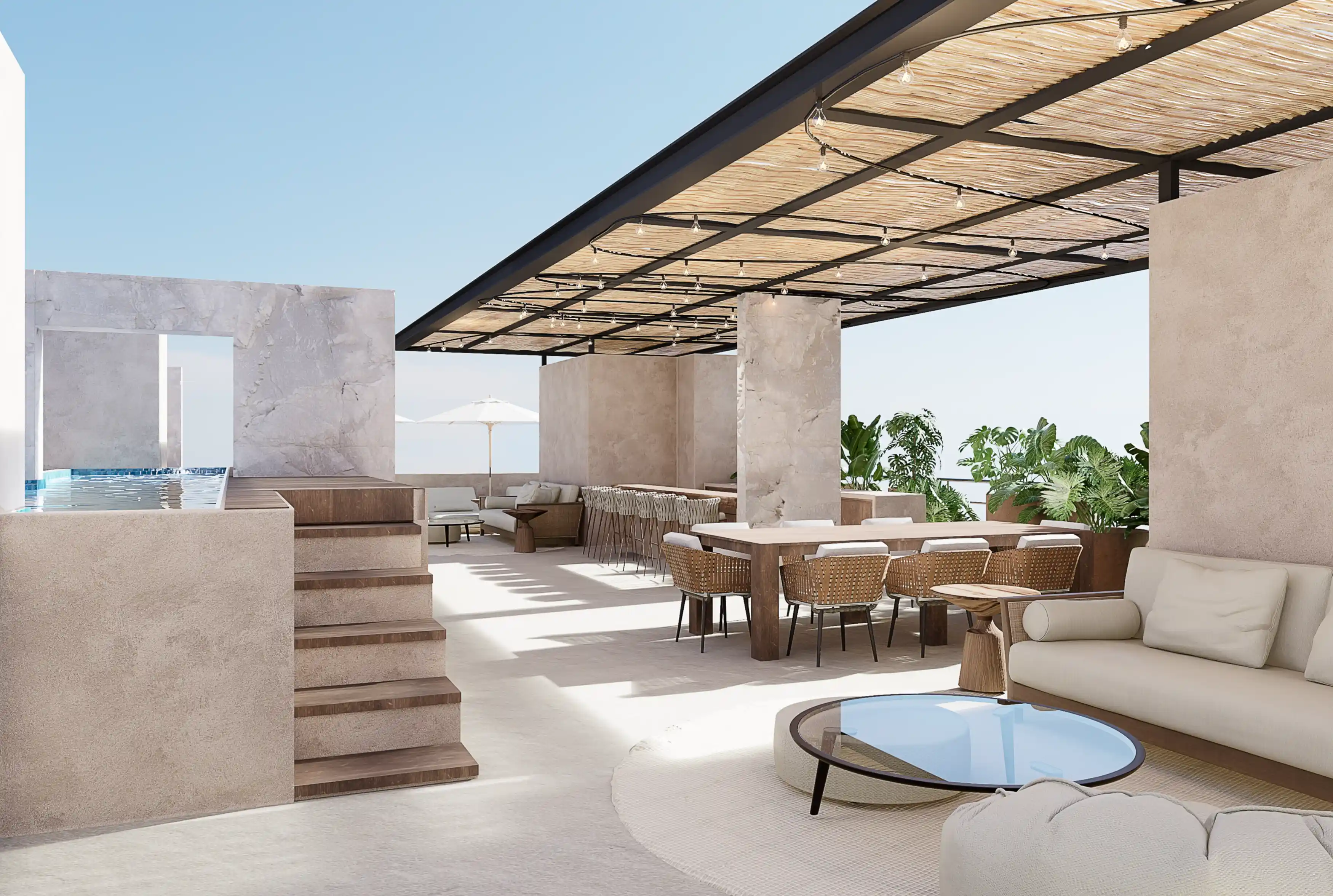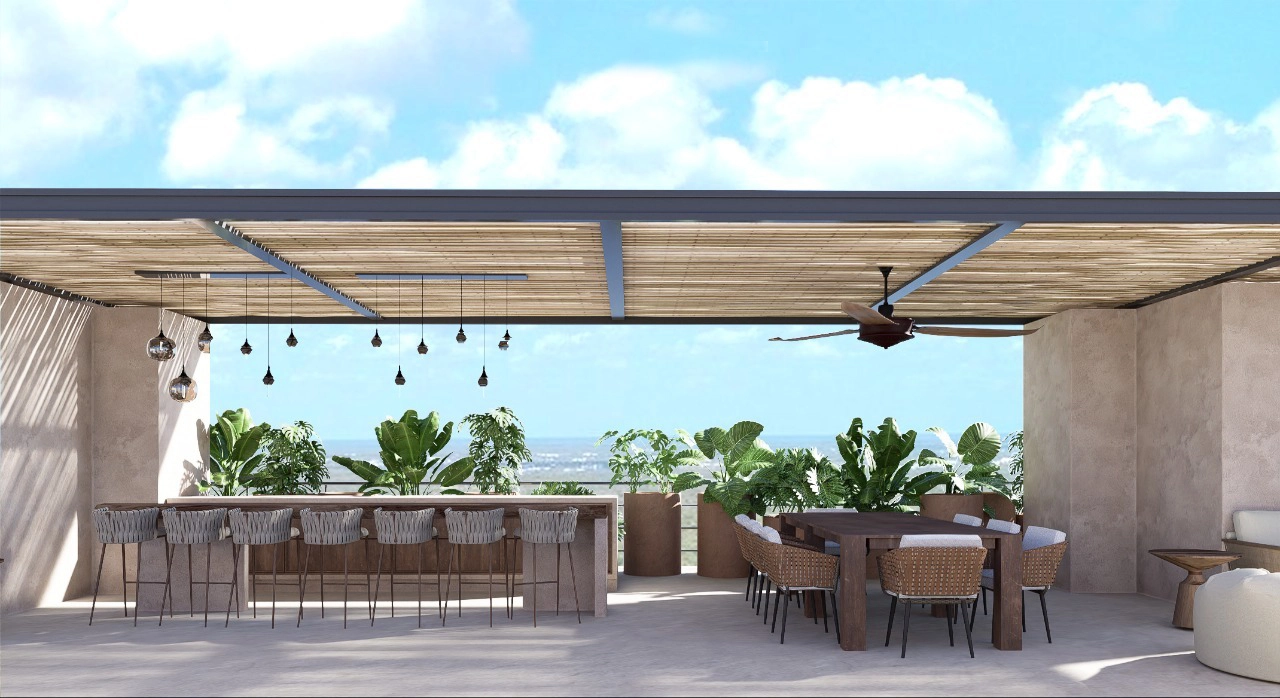 Rooftop con plunge pool, gimnasio, palapa bar y más de 10 amenidades.